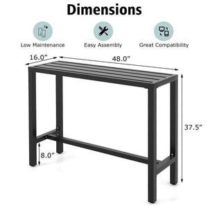 ● Weather-resistant Features: The waterproof coating greatly extends the lifespan of the heavy-duty metal frame, making the pub table rustproof, weather-resistant, and long-lasting. What's more, its slatted tabletop allows easy water drainage.